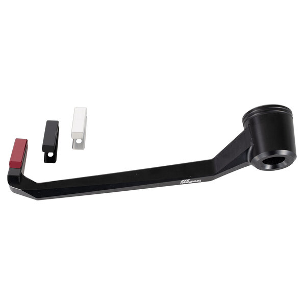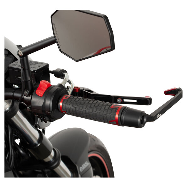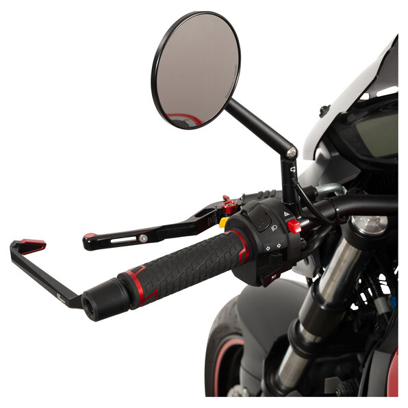 Aluminium, SchwarzFür Motorräder im Renneinsatz unverzichtbar, aber auch im öffentlichen Straßenverkehr sind diese Hebelschützer ein Sicherheitsplus und Hingucker. Sie verhindern zuverlässig unkontrollierte Vollbremsungen oder ein plötzliches Entkuppeln durch Kontakt mit anderen Verkehrsteilnehmern. magazi hat diese Hebelschützer zur Montage an Rohrlenkern mit mindestens 14 mm Innendurchmesser entwickelt.