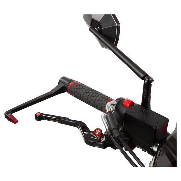 magazi Hebelschützer sind universell einsetzbar für alle Lenker ohne Gewindeaufnahme im Lenkerende. Sie sind gefertigt aus hochwertigem, schwarz eloxiertem Aluminium. Je nach Wunsch kann am Hebelschützer ein Endstück in schwarz, silber oder rot montiert werden.